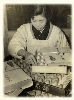 ガラス窓越しに店の奥に置かれた四台の釜からは香ばしい匂いが表通りまで漂い、店の前は、黒山 の人だかり。お店では店員さんがひよ子を一つ一つ、手で包装して、てんてこ舞いの忙しさ。そんな毎日でした。